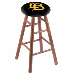Made for the ultimate sports fan, you will be proud to show where your loyalty lies with this impressive Officially Licensed stool from the Holland Bar Stool Co. You won't find a higher quality logo stool on the market. This logo swivel height stool is very versatile and built from the very highest quality U.S. sourced, solid oak or maple. A state of the art print process is used in applying specially formulated UV vinyl ink in numerous stages to produce a sharp, crisp, clear image to ensure a perfect reproduction of the logo. The legs are a full 1 3⁄4” thick and the stretchers are 1” thick. The way the base is constructed is second to none. The joints are secured with both epoxy glue and screws to ensure the highest strength and quality for any application. The 52 ball bearing swivel eliminates any unnecessary torque on the joints, so your base will not “wobble” like lesser quality wood seating. The 14 1⁄2” wide cushion seats are of the highest quality as well, utilizing a breathable, commercial grade vinyl or fabric. At the heart of the cushion is 2 1/2 inches of highly-dense foam that provides maximum support and will not breakdown in a couple years. A multi step finishing process ensures a durable, great looking finish for years to come. If you are in the market for a cool, Officially Licensed logo stool – do it right, with help from the Holland Bar Stool Co.