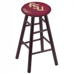 Made for the ultimate sports fan, you will be proud to show where your loyalty lies with this impressive Officially Licensed stool from the Holland Bar Stool Co. You won't find a higher quality logo stool on the market. This logo swivel height stool is very versatile and built from the very highest quality U.S. sourced, solid oak or maple. A state of the art print process is used in applying specially formulated UV vinyl ink in numerous stages to produce a sharp, crisp, clear image to ensure a perfect reproduction of the logo. The legs are a full 1 3⁄4” thick and the stretchers are 1” thick. The way the base is constructed is second to none. The joints are secured with both epoxy glue and screws to ensure the highest strength and quality for any application. The 52 ball bearing swivel eliminates any unnecessary torque on the joints, so your base will not “wobble” like lesser quality wood seating. The 14 1⁄2” wide cushion seats are of the highest quality as well, utilizing a breathable, commercial grade vinyl or fabric. At the heart of the cushion is 2 1/2 inches of highly-dense foam that provides maximum support and will not breakdown in a couple years. A multi step finishing process ensures a durable, great looking finish for years to come. If you are in the market for a cool, Officially Licensed logo stool – do it right, with help from the Holland Bar Stool Co.