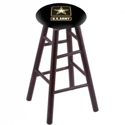Made for the ultimate sports fan, you will be proud to show where your loyalty lies with this impressive Officially Licensed stool from the Holland Bar Stool Co. You won't find a higher quality logo stool on the market. This logo swivel height stool is very versatile and built from the very highest quality U.S. sourced, solid oak or maple. A state of the art print process is used in applying specially formulated UV vinyl ink in numerous stages to produce a sharp, crisp, clear image to ensure a perfect reproduction of the logo. The legs are a full 1 3⁄4” thick and the stretchers are 1” thick. The way the base is constructed is second to none. The joints are secured with both epoxy glue and screws to ensure the highest strength and quality for any application. The 52 ball bearing swivel eliminates any unnecessary torque on the joints, so your base will not “wobble” like lesser quality wood seating. The 14 1⁄2” wide cushion seats are of the highest quality as well, utilizing a breathable, commercial grade vinyl or fabric. At the heart of the cushion is 2 1/2 inches of highly-dense foam that provides maximum support and will not breakdown in a couple years. A multi step finishing process ensures a durable, great looking finish for years to come. If you are in the market for a cool, Officially Licensed logo stool – do it right, with help from the Holland Bar Stool Co.