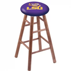 Made for the ultimate sports fan, you will be proud to show where your loyalty lies with this impressive Officially Licensed stool from the Holland Bar Stool Co. You won't find a higher quality logo stool on the market. This logo swivel height stool is very versatile and built from the very highest quality U.S. sourced, solid oak or maple. A state of the art print process is used in applying specially formulated UV vinyl ink in numerous stages to produce a sharp, crisp, clear image to ensure a perfect reproduction of the logo. The legs are a full 1 3⁄4” thick and the stretchers are 1” thick. The way the base is constructed is second to none. The joints are secured with both epoxy glue and screws to ensure the highest strength and quality for any application. The 52 ball bearing swivel eliminates any unnecessary torque on the joints, so your base will not “wobble” like lesser quality wood seating. The 14 1⁄2” wide cushion seats are of the highest quality as well, utilizing a breathable, commercial grade vinyl or fabric. At the heart of the cushion is 2 1/2 inches of highly-dense foam that provides maximum support and will not breakdown in a couple years. A multi step finishing process ensures a durable, great looking finish for years to come. If you are in the market for a cool, Officially Licensed logo stool – do it right, with help from the Holland Bar Stool Co.