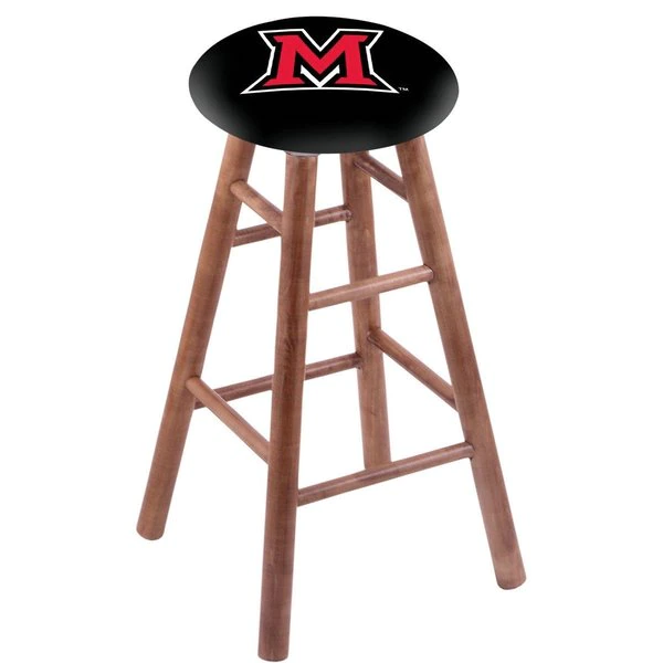 Made for the ultimate sports fan, you will be proud to show where your loyalty lies with this impressive Officially Licensed stool from the Holland Bar Stool Co. You won't find a higher quality logo stool on the market. This logo swivel height stool is very versatile and built from the very highest quality U.S. sourced, solid oak or maple. A state of the art print process is used in applying specially formulated UV vinyl ink in numerous stages to produce a sharp, crisp, clear image to ensure a perfect reproduction of the logo. The legs are a full 1 3⁄4” thick and the stretchers are 1” thick. The way the base is constructed is second to none. The joints are secured with both epoxy glue and screws to ensure the highest strength and quality for any application. The 52 ball bearing swivel eliminates any unnecessary torque on the joints, so your base will not “wobble” like lesser quality wood seating. The 14 1⁄2” wide cushion seats are of the highest quality as well, utilizing a breathable, commercial grade vinyl or fabric. At the heart of the cushion is 2 1/2 inches of highly-dense foam that provides maximum support and will not breakdown in a couple years. A multi step finishing process ensures a durable, great looking finish for years to come. If you are in the market for a cool, Officially Licensed logo stool – do it right, with help from the Holland Bar Stool Co.