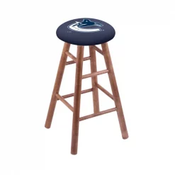 Made for the ultimate sports fan, you will be proud to show where your loyalty lies with this impressive Officially Licensed stool from the Holland Bar Stool Co. You won't find a higher quality logo stool on the market. This logo swivel height stool is very versatile and built from the very highest quality U.S. sourced, solid oak or maple. A state of the art print process is used in applying specially formulated UV vinyl ink in numerous stages to produce a sharp, crisp, clear image to ensure a perfect reproduction of the logo. The legs are a full 1 3⁄4” thick and the stretchers are 1” thick. The way the base is constructed is second to none. The joints are secured with both epoxy glue and screws to ensure the highest strength and quality for any application. The 52 ball bearing swivel eliminates any unnecessary torque on the joints, so your base will not “wobble” like lesser quality wood seating. The 14 1⁄2” wide cushion seats are of the highest quality as well, utilizing a breathable, commercial grade vinyl or fabric. At the heart of the cushion is 2 1/2 inches of highly-dense foam that provides maximum support and will not breakdown in a couple years. A multi step finishing process ensures a durable, great looking finish for years to come. If you are in the market for a cool, Officially Licensed logo stool – do it right, with help from the Holland Bar Stool Co.