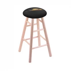 Made for the ultimate sports fan, you will be proud to show where your loyalty lies with this impressive Officially Licensed stool from the Holland Bar Stool Co. You won't find a higher quality logo stool on the market. This logo swivel height stool is very versatile and built from the very highest quality U.S. sourced, solid oak or maple. A state of the art print process is used in applying specially formulated UV vinyl ink in numerous stages to produce a sharp, crisp, clear image to ensure a perfect reproduction of the logo. The legs are a full 1 3⁄4” thick and the stretchers are 1” thick. The way the base is constructed is second to none. The joints are secured with both epoxy glue and screws to ensure the highest strength and quality for any application. The 52 ball bearing swivel eliminates any unnecessary torque on the joints, so your base will not “wobble” like lesser quality wood seating. The 14 1⁄2” wide cushion seats are of the highest quality as well, utilizing a breathable, commercial grade vinyl or fabric. At the heart of the cushion is 2 1/2 inches of highly-dense foam that provides maximum support and will not breakdown in a couple years. A multi step finishing process ensures a durable, great looking finish for years to come. If you are in the market for a cool, Officially Licensed logo stool – do it right, with help from the Holland Bar Stool Co.