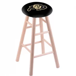 Made for the ultimate sports fan, you will be proud to show where your loyalty lies with this impressive Officially Licensed stool from the Holland Bar Stool Co. You won't find a higher quality logo stool on the market. This logo swivel height stool is very versatile and built from the very highest quality U.S. sourced, solid oak or maple. A state of the art print process is used in applying specially formulated UV vinyl ink in numerous stages to produce a sharp, crisp, clear image to ensure a perfect reproduction of the logo. The legs are a full 1 3⁄4” thick and the stretchers are 1” thick. The way the base is constructed is second to none. The joints are secured with both epoxy glue and screws to ensure the highest strength and quality for any application. The 52 ball bearing swivel eliminates any unnecessary torque on the joints, so your base will not “wobble” like lesser quality wood seating. The 14 1⁄2” wide cushion seats are of the highest quality as well, utilizing a breathable, commercial grade vinyl or fabric. At the heart of the cushion is 2 1/2 inches of highly-dense foam that provides maximum support and will not breakdown in a couple years. A multi step finishing process ensures a durable, great looking finish for years to come. If you are in the market for a cool, Officially Licensed logo stool – do it right, with help from the Holland Bar Stool Co.