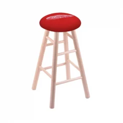 Made for the ultimate sports fan, you will be proud to show where your loyalty lies with this impressive Officially Licensed stool from the Holland Bar Stool Co. You won't find a higher quality logo stool on the market. This logo swivel height stool is very versatile and built from the very highest quality U.S. sourced, solid oak or maple. A state of the art print process is used in applying specially formulated UV vinyl ink in numerous stages to produce a sharp, crisp, clear image to ensure a perfect reproduction of the logo. The legs are a full 1 3⁄4” thick and the stretchers are 1” thick. The way the base is constructed is second to none. The joints are secured with both epoxy glue and screws to ensure the highest strength and quality for any application. The 52 ball bearing swivel eliminates any unnecessary torque on the joints, so your base will not “wobble” like lesser quality wood seating. The 14 1⁄2” wide cushion seats are of the highest quality as well, utilizing a breathable, commercial grade vinyl or fabric. At the heart of the cushion is 2 1/2 inches of highly-dense foam that provides maximum support and will not breakdown in a couple years. A multi step finishing process ensures a durable, great looking finish for years to come. If you are in the market for a cool, Officially Licensed logo stool – do it right, with help from the Holland Bar Stool Co.