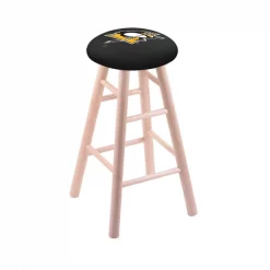 Made for the ultimate sports fan, you will be proud to show where your loyalty lies with this impressive Officially Licensed stool from the Holland Bar Stool Co. You won't find a higher quality logo stool on the market. This logo swivel height stool is very versatile and built from the very highest quality U.S. sourced, solid oak or maple. A state of the art print process is used in applying specially formulated UV vinyl ink in numerous stages to produce a sharp, crisp, clear image to ensure a perfect reproduction of the logo. The legs are a full 1 3⁄4” thick and the stretchers are 1” thick. The way the base is constructed is second to none. The joints are secured with both epoxy glue and screws to ensure the highest strength and quality for any application. The 52 ball bearing swivel eliminates any unnecessary torque on the joints, so your base will not “wobble” like lesser quality wood seating. The 14 1⁄2” wide cushion seats are of the highest quality as well, utilizing a breathable, commercial grade vinyl or fabric. At the heart of the cushion is 2 1/2 inches of highly-dense foam that provides maximum support and will not breakdown in a couple years. A multi step finishing process ensures a durable, great looking finish for years to come. If you are in the market for a cool, Officially Licensed logo stool – do it right, with help from the Holland Bar Stool Co.