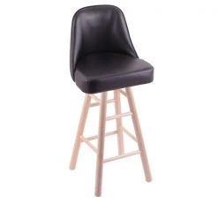 Customize your very own bar stool with help from the Holland Bar Stool Co. This Grizzly swivel bar stool offers superb comfort and excellent back support. The base is built from the very highest quality U.S. sourced, solid oak or maple. The legs are a full 1 3⁄4” thick and the stretchers are 1” thick. The way the base is constructed is second to none. The joints are secured with both epoxy glue and screws to ensure the highest strength and quality for any application. The 52 ball bearing swivel eliminates any unnecessary torque on the joints, so your base will not “wobble” like lesser quality wood seating. The fully upholstered black vinyl seat is of the highest quality, utilizing a breathable, commercial grade vinyl. Underneath this is 4 inches of highly-dense foam to provide maximum support. You won't find a higher quality stool on the market. A multi step finishing process ensures a durable, great looking base for years to come. If you are going to finish your bar or dining area – do it right, with a stool from the Holland Bar Stool Co.