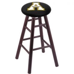 Made for the ultimate sports fan, you will be proud to show where your loyalty lies with this impressive Officially Licensed stool from the Holland Bar Stool Co. You won't find a higher quality logo stool on the market. This logo swivel height stool is very versatile and built from the very highest quality U.S. sourced, solid oak or maple. A state of the art print process is used in applying specially formulated UV vinyl ink in numerous stages to produce a sharp, crisp, clear image to ensure a perfect reproduction of the logo. The legs are a full 1 3⁄4” thick and the stretchers are 1” thick. The way the base is constructed is second to none. The joints are secured with both epoxy glue and screws to ensure the highest strength and quality for any application. The 52 ball bearing swivel eliminates any unnecessary torque on the joints, so your base will not “wobble” like lesser quality wood seating. The 14 1⁄2” wide cushion seats are of the highest quality as well, utilizing a breathable, commercial grade vinyl or fabric. At the heart of the cushion is 2 1/2 inches of highly-dense foam that provides maximum support and will not breakdown in a couple years. A multi step finishing process ensures a durable, great looking finish for years to come. If you are in the market for a cool, Officially Licensed logo stool – do it right, with help from the Holland Bar Stool Co.