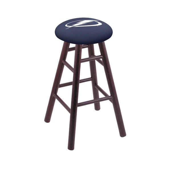 Made for the ultimate sports fan, you will be proud to show where your loyalty lies with this impressive Officially Licensed stool from the Holland Bar Stool Co. You won't find a higher quality logo stool on the market. This logo swivel height stool is very versatile and built from the very highest quality U.S. sourced, solid oak or maple. A state of the art print process is used in applying specially formulated UV vinyl ink in numerous stages to produce a sharp, crisp, clear image to ensure a perfect reproduction of the logo. The legs are a full 1 3⁄4” thick and the stretchers are 1” thick. The way the base is constructed is second to none. The joints are secured with both epoxy glue and screws to ensure the highest strength and quality for any application. The 52 ball bearing swivel eliminates any unnecessary torque on the joints, so your base will not “wobble” like lesser quality wood seating. The 14 1⁄2” wide cushion seats are of the highest quality as well, utilizing a breathable, commercial grade vinyl or fabric. At the heart of the cushion is 2 1/2 inches of highly-dense foam that provides maximum support and will not breakdown in a couple years. A multi step finishing process ensures a durable, great looking finish for years to come. If you are in the market for a cool, Officially Licensed logo stool – do it right, with help from the Holland Bar Stool Co.