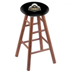 Made for the ultimate sports fan, you will be proud to show where your loyalty lies with this impressive Officially Licensed stool from the Holland Bar Stool Co. You won't find a higher quality logo stool on the market. This logo swivel height stool is very versatile and built from the very highest quality U.S. sourced, solid oak or maple. A state of the art print process is used in applying specially formulated UV vinyl ink in numerous stages to produce a sharp, crisp, clear image to ensure a perfect reproduction of the logo. The legs are a full 1 3⁄4” thick and the stretchers are 1” thick. The way the base is constructed is second to none. The joints are secured with both epoxy glue and screws to ensure the highest strength and quality for any application. The 52 ball bearing swivel eliminates any unnecessary torque on the joints, so your base will not “wobble” like lesser quality wood seating. The 14 1⁄2” wide cushion seats are of the highest quality as well, utilizing a breathable, commercial grade vinyl or fabric. At the heart of the cushion is 2 1/2 inches of highly-dense foam that provides maximum support and will not breakdown in a couple years. A multi step finishing process ensures a durable, great looking finish for years to come. If you are in the market for a cool, Officially Licensed logo stool – do it right, with help from the Holland Bar Stool Co.
