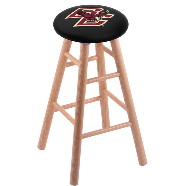 Made for the ultimate sports fan, you will be proud to show where your loyalty lies with this impressive Officially Licensed stool from the Holland Bar Stool Co. You won't find a higher quality logo stool on the market. This logo swivel height stool is very versatile and built from the very highest quality U.S. sourced, solid oak or maple. A state of the art print process is used in applying specially formulated UV vinyl ink in numerous stages to produce a sharp, crisp, clear image to ensure a perfect reproduction of the logo. The legs are a full 1 3⁄4” thick and the stretchers are 1” thick. The way the base is constructed is second to none. The joints are secured with both epoxy glue and screws to ensure the highest strength and quality for any application. The 52 ball bearing swivel eliminates any unnecessary torque on the joints, so your base will not “wobble” like lesser quality wood seating. The 14 1⁄2” wide cushion seats are of the highest quality as well, utilizing a breathable, commercial grade vinyl or fabric. At the heart of the cushion is 2 1/2 inches of highly-dense foam that provides maximum support and will not breakdown in a couple years. A multi step finishing process ensures a durable, great looking finish for years to come. If you are in the market for a cool, Officially Licensed logo stool – do it right, with help from the Holland Bar Stool Co.