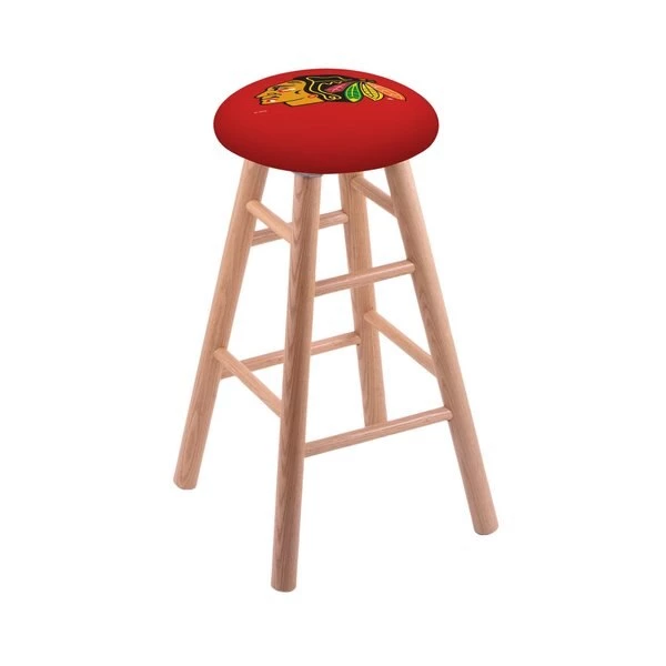Made for the ultimate sports fan, you will be proud to show where your loyalty lies with this impressive Officially Licensed stool from the Holland Bar Stool Co. You won't find a higher quality logo stool on the market. This logo swivel height stool is very versatile and built from the very highest quality U.S. sourced, solid oak or maple. A state of the art print process is used in applying specially formulated UV vinyl ink in numerous stages to produce a sharp, crisp, clear image to ensure a perfect reproduction of the logo. The legs are a full 1 3⁄4” thick and the stretchers are 1” thick. The way the base is constructed is second to none. The joints are secured with both epoxy glue and screws to ensure the highest strength and quality for any application. The 52 ball bearing swivel eliminates any unnecessary torque on the joints, so your base will not “wobble” like lesser quality wood seating. The 14 1⁄2” wide cushion seats are of the highest quality as well, utilizing a breathable, commercial grade vinyl or fabric. At the heart of the cushion is 2 1/2 inches of highly-dense foam that provides maximum support and will not breakdown in a couple years. A multi step finishing process ensures a durable, great looking finish for years to come. If you are in the market for a cool, Officially Licensed logo stool – do it right, with help from the Holland Bar Stool Co.