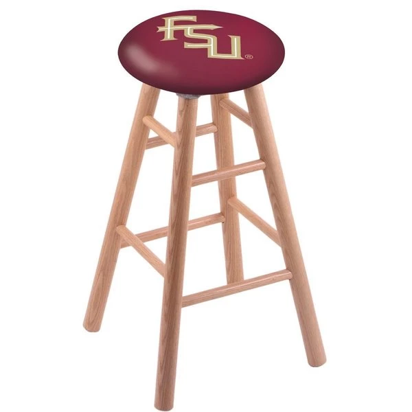 Made for the ultimate sports fan, you will be proud to show where your loyalty lies with this impressive Officially Licensed stool from the Holland Bar Stool Co. You won't find a higher quality logo stool on the market. This logo swivel height stool is very versatile and built from the very highest quality U.S. sourced, solid oak or maple. A state of the art print process is used in applying specially formulated UV vinyl ink in numerous stages to produce a sharp, crisp, clear image to ensure a perfect reproduction of the logo. The legs are a full 1 3⁄4” thick and the stretchers are 1” thick. The way the base is constructed is second to none. The joints are secured with both epoxy glue and screws to ensure the highest strength and quality for any application. The 52 ball bearing swivel eliminates any unnecessary torque on the joints, so your base will not “wobble” like lesser quality wood seating. The 14 1⁄2” wide cushion seats are of the highest quality as well, utilizing a breathable, commercial grade vinyl or fabric. At the heart of the cushion is 2 1/2 inches of highly-dense foam that provides maximum support and will not breakdown in a couple years. A multi step finishing process ensures a durable, great looking finish for years to come. If you are in the market for a cool, Officially Licensed logo stool – do it right, with help from the Holland Bar Stool Co.