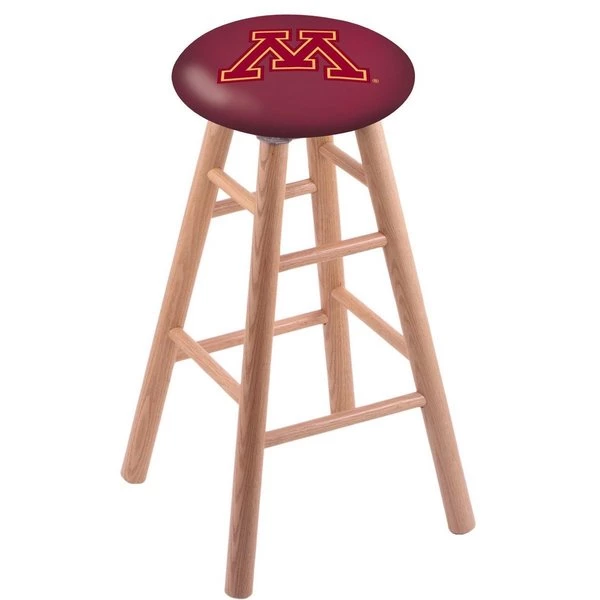 Made for the ultimate sports fan, you will be proud to show where your loyalty lies with this impressive Officially Licensed stool from the Holland Bar Stool Co. You won't find a higher quality logo stool on the market. This logo swivel height stool is very versatile and built from the very highest quality U.S. sourced, solid oak or maple. A state of the art print process is used in applying specially formulated UV vinyl ink in numerous stages to produce a sharp, crisp, clear image to ensure a perfect reproduction of the logo. The legs are a full 1 3⁄4” thick and the stretchers are 1” thick. The way the base is constructed is second to none. The joints are secured with both epoxy glue and screws to ensure the highest strength and quality for any application. The 52 ball bearing swivel eliminates any unnecessary torque on the joints, so your base will not “wobble” like lesser quality wood seating. The 14 1⁄2” wide cushion seats are of the highest quality as well, utilizing a breathable, commercial grade vinyl or fabric. At the heart of the cushion is 2 1/2 inches of highly-dense foam that provides maximum support and will not breakdown in a couple years. A multi step finishing process ensures a durable, great looking finish for years to come. If you are in the market for a cool, Officially Licensed logo stool – do it right, with help from the Holland Bar Stool Co.