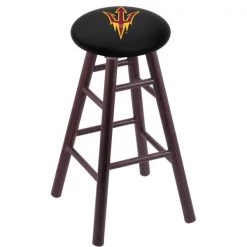 Made for the ultimate sports fan, you will be proud to show where your loyalty lies with this impressive Officially Licensed stool from the Holland Bar Stool Co. You won't find a higher quality logo stool on the market. This logo swivel height stool is very versatile and built from the very highest quality U.S. sourced, solid oak or maple. A state of the art print process is used in applying specially formulated UV vinyl ink in numerous stages to produce a sharp, crisp, clear image to ensure a perfect reproduction of the logo. The legs are a full 1 3⁄4” thick and the stretchers are 1” thick. The way the base is constructed is second to none. The joints are secured with both epoxy glue and screws to ensure the highest strength and quality for any application. The 52 ball bearing swivel eliminates any unnecessary torque on the joints, so your base will not “wobble” like lesser quality wood seating. The 14 1⁄2” wide cushion seats are of the highest quality as well, utilizing a breathable, commercial grade vinyl or fabric. At the heart of the cushion is 2 1/2 inches of highly-dense foam that provides maximum support and will not breakdown in a couple years. A multi step finishing process ensures a durable, great looking finish for years to come. If you are in the market for a cool, Officially Licensed logo stool – do it right, with help from the Holland Bar Stool Co.