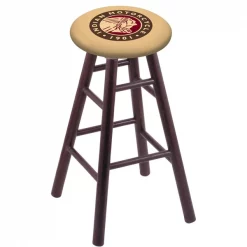 Made for the ultimate sports fan, you will be proud to show where your loyalty lies with this impressive Officially Licensed stool from the Holland Bar Stool Co. You won't find a higher quality logo stool on the market. This logo swivel height stool is very versatile and built from the very highest quality U.S. sourced, solid oak or maple. A state of the art print process is used in applying specially formulated UV vinyl ink in numerous stages to produce a sharp, crisp, clear image to ensure a perfect reproduction of the logo. The legs are a full 1 3⁄4” thick and the stretchers are 1” thick. The way the base is constructed is second to none. The joints are secured with both epoxy glue and screws to ensure the highest strength and quality for any application. The 52 ball bearing swivel eliminates any unnecessary torque on the joints, so your base will not “wobble” like lesser quality wood seating. The 14 1⁄2” wide cushion seats are of the highest quality as well, utilizing a breathable, commercial grade vinyl or fabric. At the heart of the cushion is 2 1/2 inches of highly-dense foam that provides maximum support and will not breakdown in a couple years. A multi step finishing process ensures a durable, great looking finish for years to come. If you are in the market for a cool, Officially Licensed logo stool – do it right, with help from the Holland Bar Stool Co.