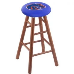 Made for the ultimate sports fan, you will be proud to show where your loyalty lies with this impressive Officially Licensed stool from the Holland Bar Stool Co. You won't find a higher quality logo stool on the market. This logo swivel height stool is very versatile and built from the very highest quality U.S. sourced, solid oak or maple. A state of the art print process is used in applying specially formulated UV vinyl ink in numerous stages to produce a sharp, crisp, clear image to ensure a perfect reproduction of the logo. The legs are a full 1 3⁄4” thick and the stretchers are 1” thick. The way the base is constructed is second to none. The joints are secured with both epoxy glue and screws to ensure the highest strength and quality for any application. The 52 ball bearing swivel eliminates any unnecessary torque on the joints, so your base will not “wobble” like lesser quality wood seating. The 14 1⁄2” wide cushion seats are of the highest quality as well, utilizing a breathable, commercial grade vinyl or fabric. At the heart of the cushion is 2 1/2 inches of highly-dense foam that provides maximum support and will not breakdown in a couple years. A multi step finishing process ensures a durable, great looking finish for years to come. If you are in the market for a cool, Officially Licensed logo stool – do it right, with help from the Holland Bar Stool Co.