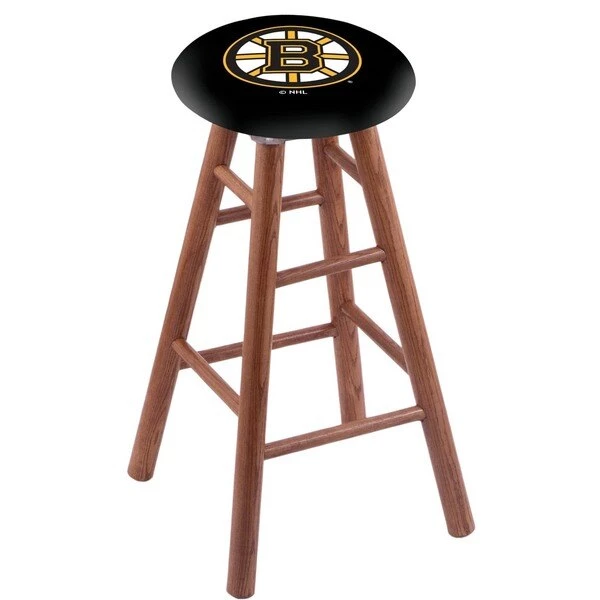 Made for the ultimate sports fan, you will be proud to show where your loyalty lies with this impressive Officially Licensed stool from the Holland Bar Stool Co. You won't find a higher quality logo stool on the market. This logo swivel height stool is very versatile and built from the very highest quality U.S. sourced, solid oak or maple. A state of the art print process is used in applying specially formulated UV vinyl ink in numerous stages to produce a sharp, crisp, clear image to ensure a perfect reproduction of the logo. The legs are a full 1 3⁄4” thick and the stretchers are 1” thick. The way the base is constructed is second to none. The joints are secured with both epoxy glue and screws to ensure the highest strength and quality for any application. The 52 ball bearing swivel eliminates any unnecessary torque on the joints, so your base will not “wobble” like lesser quality wood seating. The 14 1⁄2” wide cushion seats are of the highest quality as well, utilizing a breathable, commercial grade vinyl or fabric. At the heart of the cushion is 2 1/2 inches of highly-dense foam that provides maximum support and will not breakdown in a couple years. A multi step finishing process ensures a durable, great looking finish for years to come. If you are in the market for a cool, Officially Licensed logo stool – do it right, with help from the Holland Bar Stool Co.