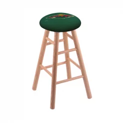 Made for the ultimate sports fan, you will be proud to show where your loyalty lies with this impressive Officially Licensed stool from the Holland Bar Stool Co. You won't find a higher quality logo stool on the market. This logo swivel height stool is very versatile and built from the very highest quality U.S. sourced, solid oak or maple. A state of the art print process is used in applying specially formulated UV vinyl ink in numerous stages to produce a sharp, crisp, clear image to ensure a perfect reproduction of the logo. The legs are a full 1 3⁄4” thick and the stretchers are 1” thick. The way the base is constructed is second to none. The joints are secured with both epoxy glue and screws to ensure the highest strength and quality for any application. The 52 ball bearing swivel eliminates any unnecessary torque on the joints, so your base will not “wobble” like lesser quality wood seating. The 14 1⁄2” wide cushion seats are of the highest quality as well, utilizing a breathable, commercial grade vinyl or fabric. At the heart of the cushion is 2 1/2 inches of highly-dense foam that provides maximum support and will not breakdown in a couple years. A multi step finishing process ensures a durable, great looking finish for years to come. If you are in the market for a cool, Officially Licensed logo stool – do it right, with help from the Holland Bar Stool Co.