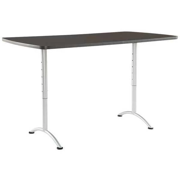 Multipurpose Table, Surface Material Thermal Fused Melamine Laminate, Rectangle, Width 72 in, Depth 36 in, Height 30 in to 42 in, Tabletop Color Family Gray, Tabletop Color Graphite, Frame Color Silver, Assembled/Unassembled Unassembled, Frame Material Steel, Edge Color Gray, Edge Type T-Molded, Leg Type Steel Tubular Legs with Arched Base, Top Thickness 1 1/8 in, Series ARC, Load Rating 200 lb, Features Adjusts in 3 in Increments, Spring Button Clips, Standards ANSI/BIFMA
