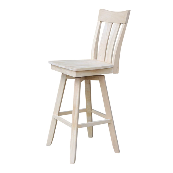 International Concepts Ava Bar Height Stool, with Swivel 30" Seat Height, Unfinished