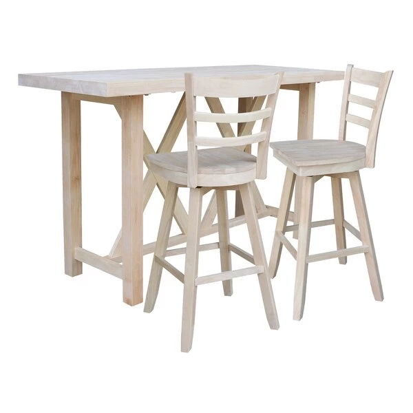 International Concepts Bar Height Table With 2 Ladder Back Swivel Bar Stools – 30 in. Seat Height