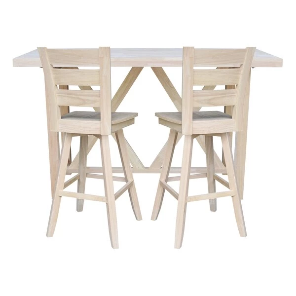 International Concepts Bar Height Table With 2 Ladder Back Swivel Bar Stools – 30 in. Seat Height