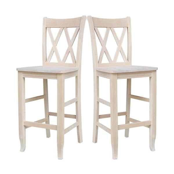 International Concepts Double X-Back Bar Height Stool, 30" Seat Height, Unfinished