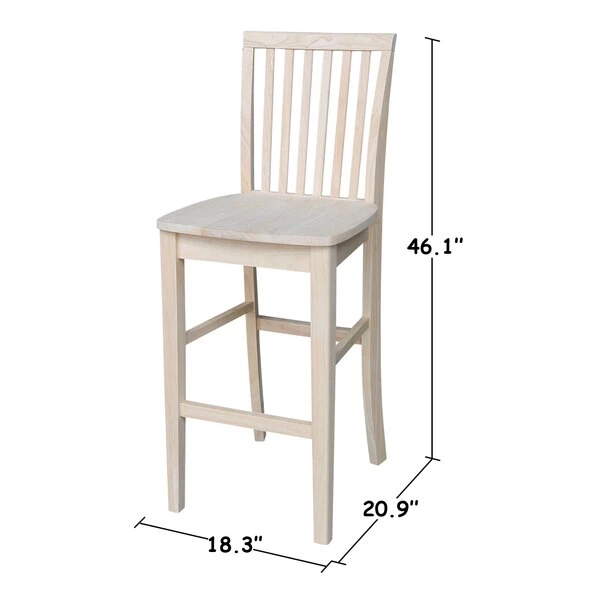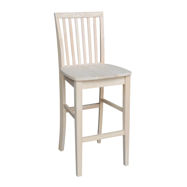 International Concepts Mission Bar Height Stool, 30" Seat Height, Unfinished