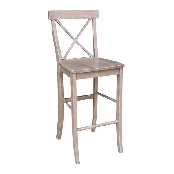 International Concepts X-Back Bar Height Stool, 30" Seat Height, Washed Gray Taupe