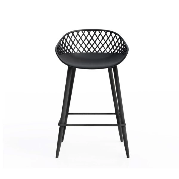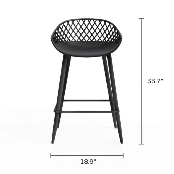 The Kurv Counter Stool is a refreshing take on the average counter stool. The airy and chic design instantly modernizes the kitchen and dining area, or even a work space, all without overpowering the surroundings. The contoured shape is ergonomically designed for comfort while creating a stylish look and feel. The curved stool features a sleek low back silhouette and perforated design with metal legs that are attached to a classic sturdy metal frame. Smooth surfaces are easy to clean. The chair measures 18.9” W x 18.7” D x 33.7” H. Minor assembly required.