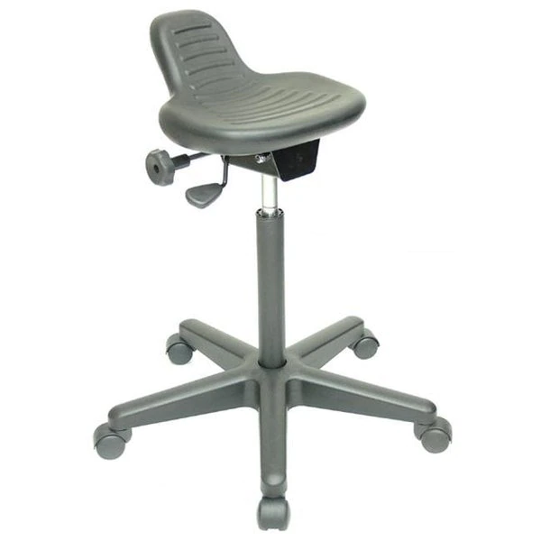 Sit/Stand Stool designed for people who have a height adjusting desk so user can sit in low position but can lean against stool in high setting while standing. FeaturesStool designed to work with sit/stand desk systemsGas cylinder height adjustmentUnique polyurethane seat design makes it ideal for static sensitive and heavy duty areasSpecificationsColor: BlackCountry of Origin: Taiwan