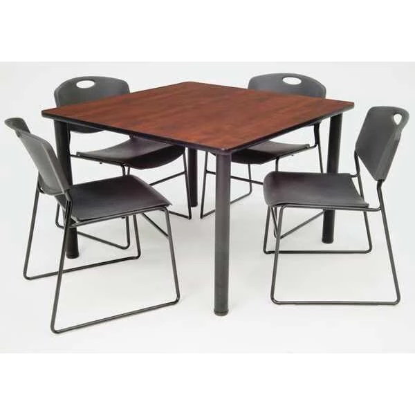 - Item: Cherry Table/4 Black Chairs, Square,42″