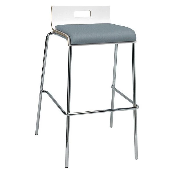 These chic, stylish and visually appealing stools are packed with versatility and function at affordable prices. Ideal for cafeterias, breakrooms or common areas. The durable frame is 3/4” round tubing made of 16 gauge steel. The attractive bent plywood shell has a high pressure laminate finish for maximum durability and easy maintenance. The one piece construction has a sleek low profile in the back and a waterfall PVC vinyl upholstered seat. Stacks 5 high. Weight tested to hold 300 lbs.