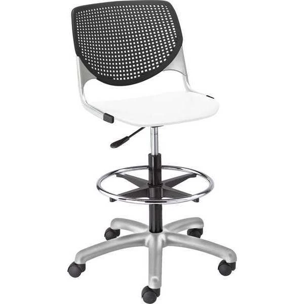 Kfi Poly Adjustable Stool, Perforated Back, Color: Black, White