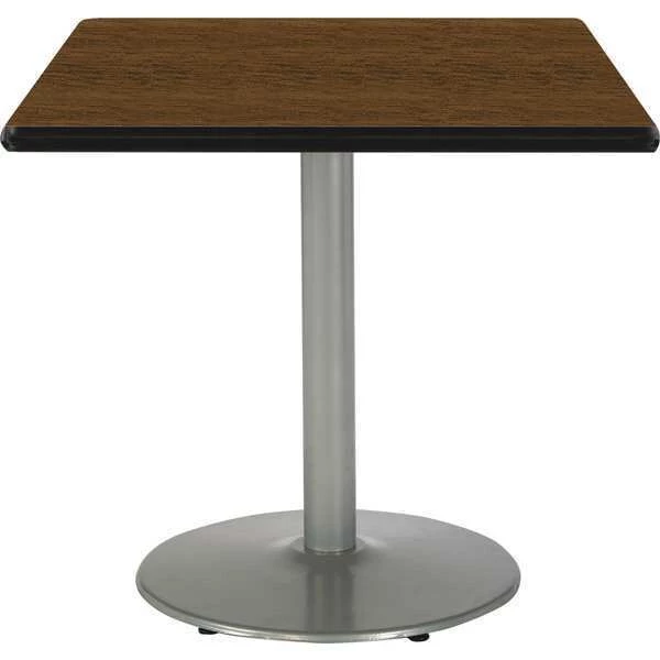 Kfi Square Pedestal Table, 36" W, 29" (Cafe Height) H, Laminate Top, Walnut