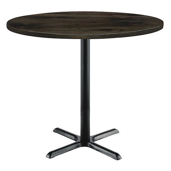 - Item: KFI Urban Loft 42″ Round Top Breakroom Table, Barnwood Finish, Black X Base, Bistro Height