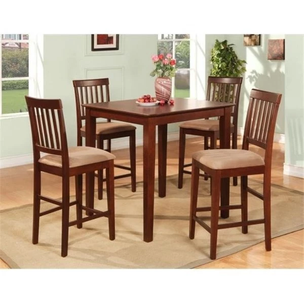 This 3 PC set includes one square counter height pub table and 2 matching microfiber upholstered or wood seat counter height stools.Mahogany Vernon table and chairs sets will grace any dinette. kitchen. or dining room.Vernon table and chairs are excellent for restaurants as these sets are both pub height and counter height.Sleek tapered-legged chairs are a marvelous fit for pub height tables or as alternatives to bar stools.Classy square table is counter height and will fit perfectly in any kitchen. dining room. dinette. or restaurant.Sturdy seats upholstered in microfiber are available and perfect for home use or bar stools.Square counter height table top and tapered legs.Ladder back counter stool will impress your guess with its stylish design.Finished in Mahogany color. Also available in Butter milk white and cherry.Simple Assembly Required.Counter Height Table: 36"SQ x 36" Height.Stools: 18"W x 17"D.Seat Height: 24".Back Height: 42".