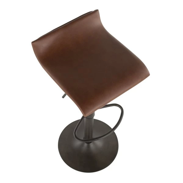 A gentle wave in the upholstered faux leather seat of the Ale Bar Stool creates a welcoming allure. Featuring an adjustable antique metal base with built-in footrest, this stool allows you to position the seat height anywhere from 21" to 30". Available in various colors and finishes.