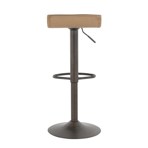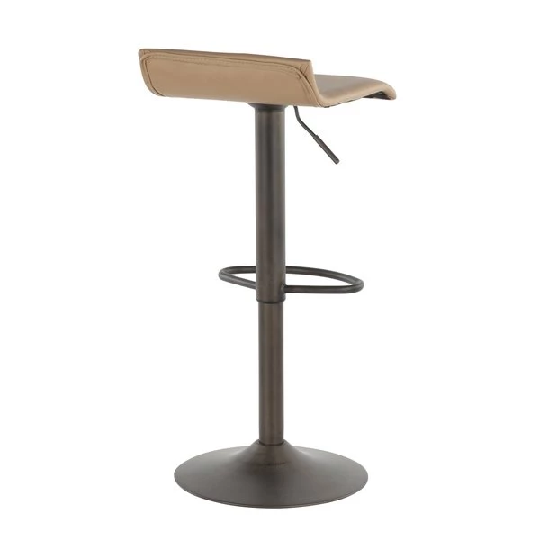 A gentle wave in the upholstered faux leather seat of the Ale Bar Stool creates a welcoming allure. Featuring an adjustable antique metal base with built-in footrest, this stool allows you to position the seat height anywhere from 21" to 30". Available in various colors and finishes.