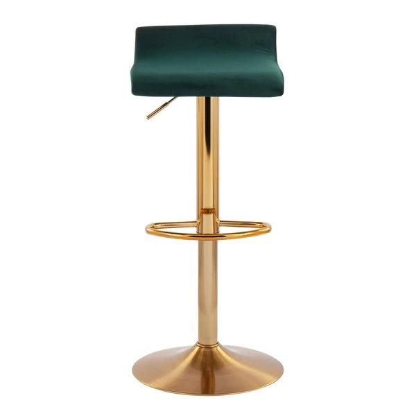 A gentle wave in the upholstered velvet seat of the Ale Bar Stool creates a welcoming allure. Featuring an adjustable gold metal base and a built-in footrest, this stool allows you to position the seat height anywhere from 22" to 30". With the Ale Bar Stool, you get a simple yet sophisticated style at a great value!