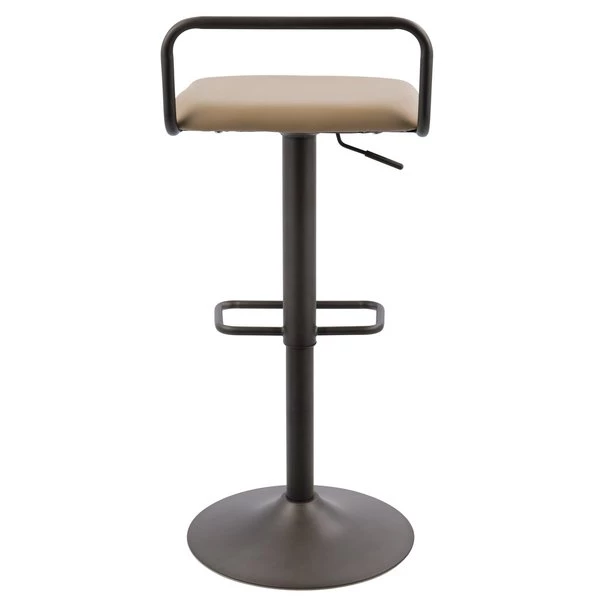 Industrial meets contemporary in the Beta Barstool from LumiSource. This adjustable height stool features a slender-profile antique metal base, minimal rectangular backrest and footrest, and a rich camel-colored faux leather seat. Bar seating at its finest.