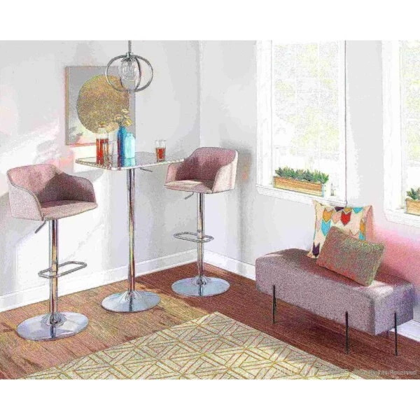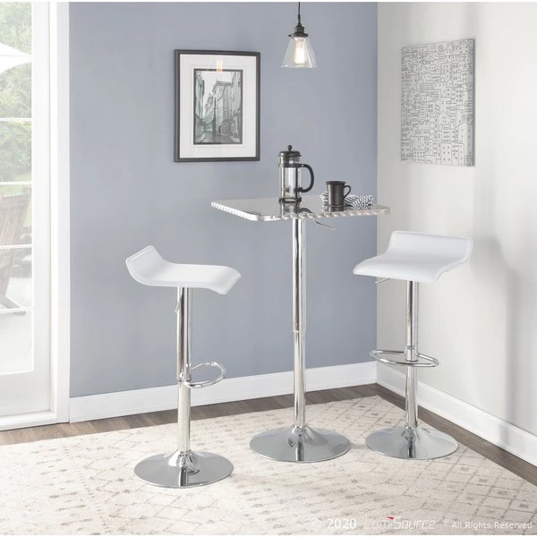 A decorative swirl pattern on an aluminum top makes the Bistro Bar Table perfect for multiple uses. A hydraulic lever allows the table top height to adjust from 26" to 41". With the adjustable chrome base you have a table perfect for smaller kitchens, dining areas or any bar. The new and improved Bistro Tables now feature tool-less assembly. Add it to your rec room, dining room, party, extra breakfast nook.