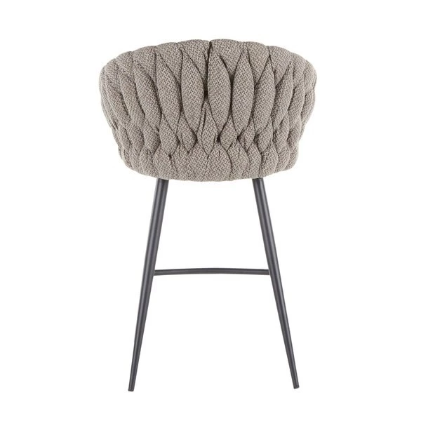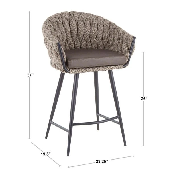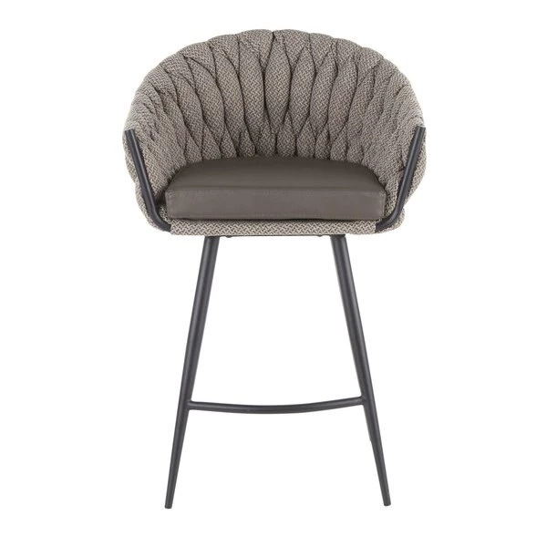 The contemporary design of the Braided Matisse Counter Stool features unique "braided" fabric and faux leather upholstery, padded bucket style seat and sleek black metal tapered legs and a footrest for comfort. Perfect for your bar or counter area, the Matisse comes in a variety of colors.