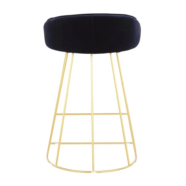 Opulent and confidently contemporary – that's the Canary Counter Stool by LumiSource. Features a captivating cage-like gold tone metal base with footrest, subtle curved backrest, and an elegant upholstered seat available in various modern colors. Definitely a bold touch of fancy for your seating needs.