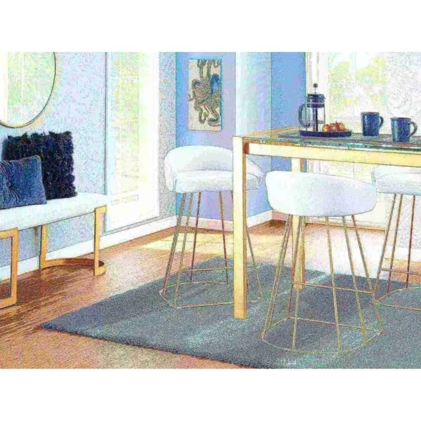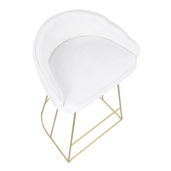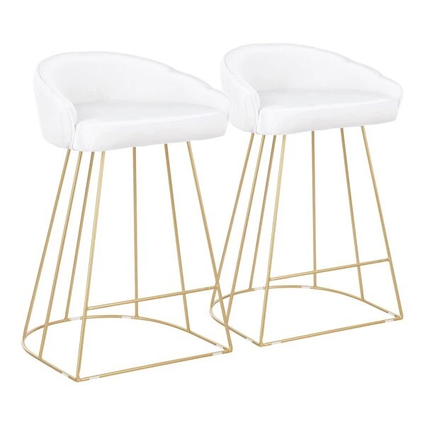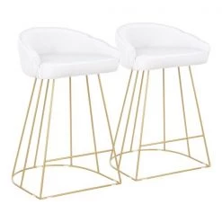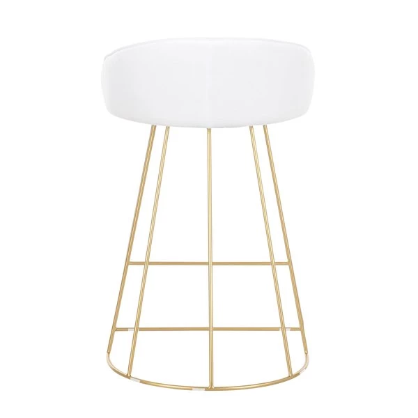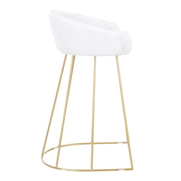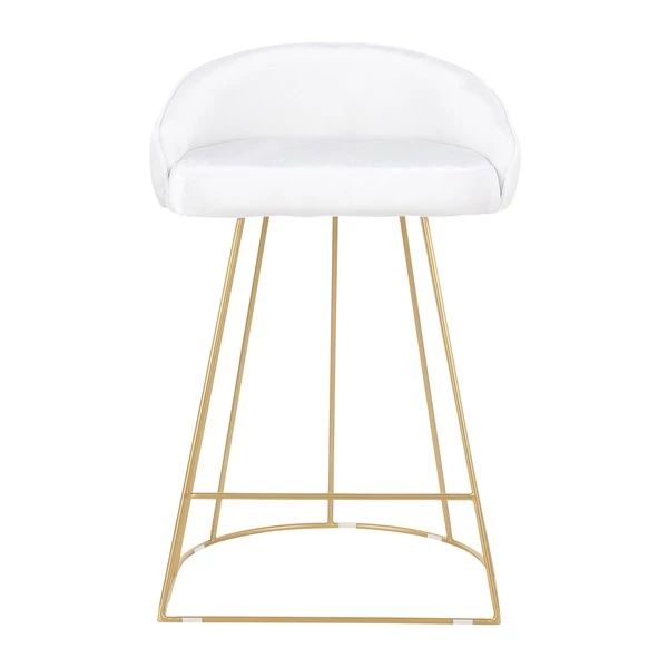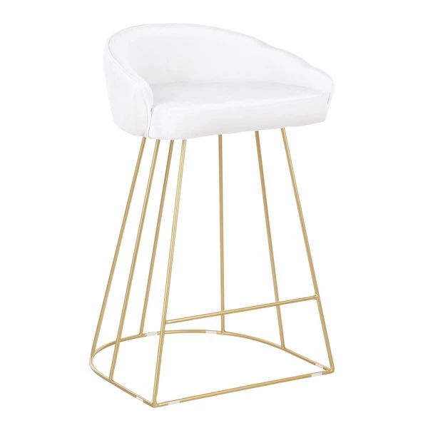 Opulent and confidently contemporary – that's the Canary Counter Stool by LumiSource. Features a captivating cage-like gold tone metal base with footrest, subtle curved backrest, and an elegant upholstered seat available in various modern colors. Definitely a bold touch of fancy for your seating needs.