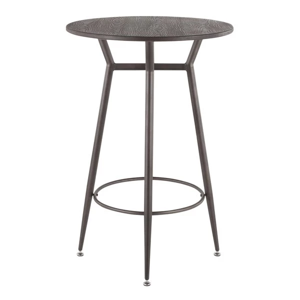 Simplistic, yet stylish the Clara Industrial Round Bar Table by LumiSource will bring reclaimed-style into your home. This bar table features durable construction with a distressed finish, tapered legs, and a round top. Available in a variety of finishes, choose your preferred color.