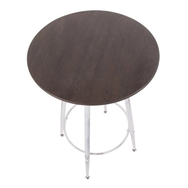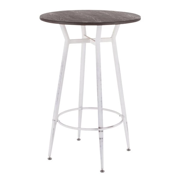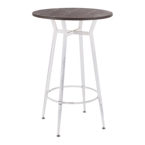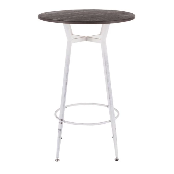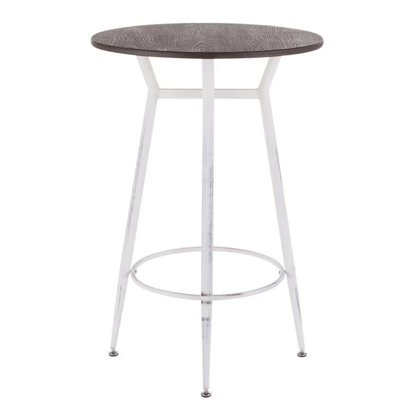 Simplistic, yet stylish the Clara Industrial Round Bar Table by LumiSource will bring reclaimed-style into your home. This bar table features durable construction with a distressed finish, tapered legs, and a round top. Available in a variety of finishes, choose your preferred color.