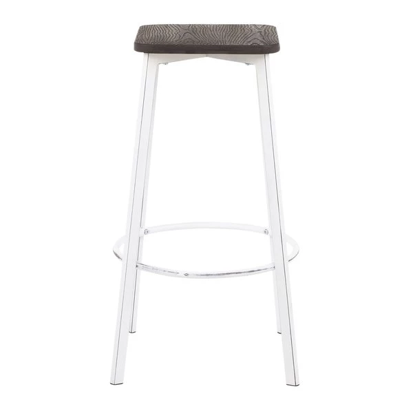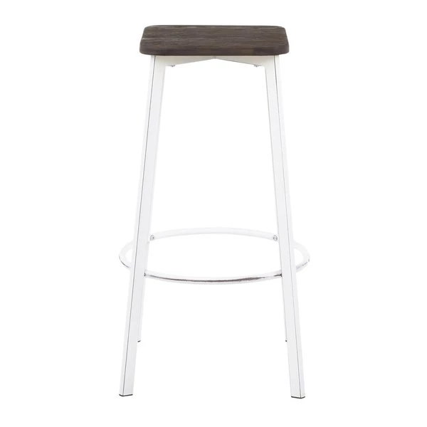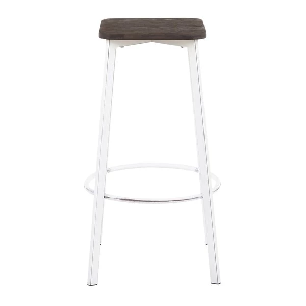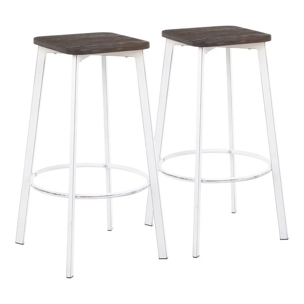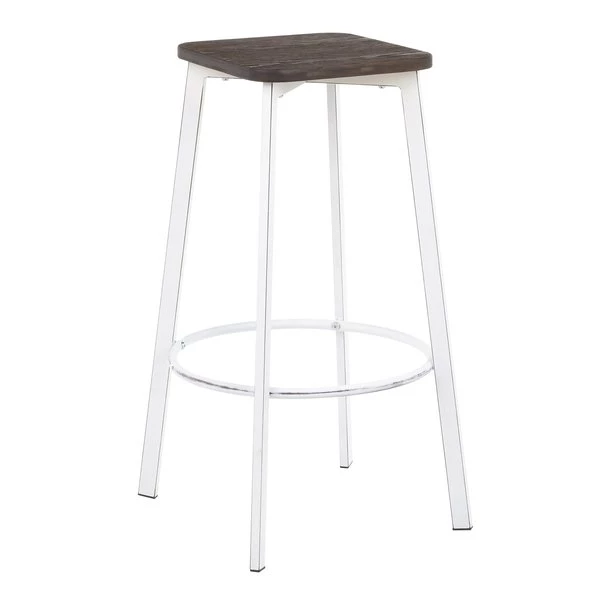 A modern silhouette with an industrial flair, the Clara Square Bar Stool showcases stylish elements that will fit seamlessly with your industrial décor. Featuring a stationary backless design, a built-in footrest, and an antique metal base accented by an espresso distressed wood square seat. Sold in sets of two and available in a variety of color options, choose the one that fits your space the best.