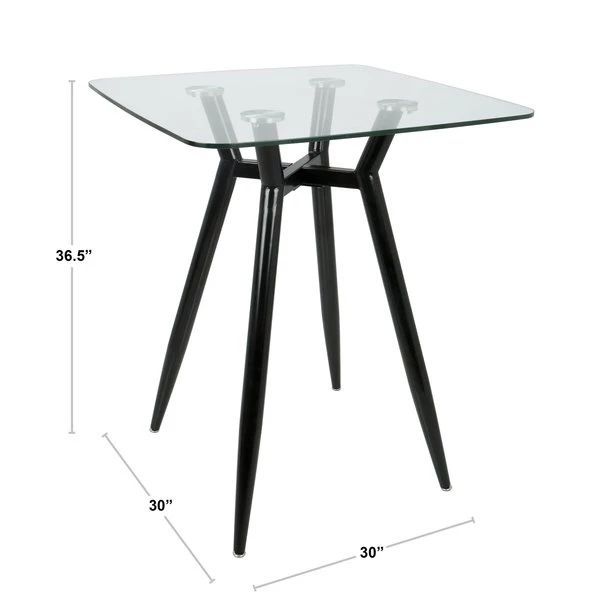 Lumisource Fuji Square Bar Table in Stainless Steel with Clear Glass Top